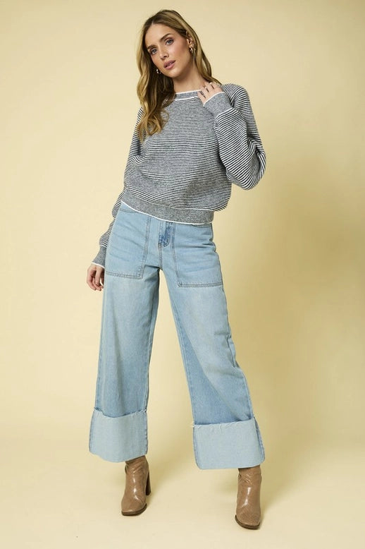 Introducing the Alice Sweater, your go-to long sleeve striped sweater in elegant Ivory-Black Stripe. Designed to effortlessly combine modern style with classic comfort, this piece is perfect for both casual outings and sophisticated ensembles. Made from premium materials, the Alice Sweater offers a cozy fit while keeping you on trend. Elevate your wardrobe with a touch of timeless fashion from Cardigan's inclusive and stylish collection.