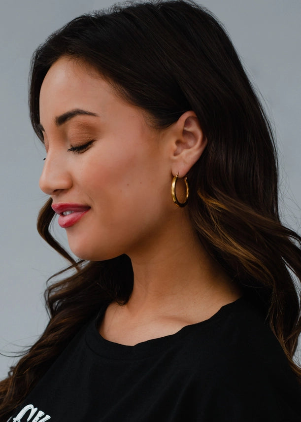 Add a touch of sparkle to any outfit with the Annie Earrings. These 1.25-inch hoops, available in silver or gold, are perfect for everyday wear or dressing up for a night out. Their versatile size and classic design make them your go-to accessory for effortless style with a playful twist.