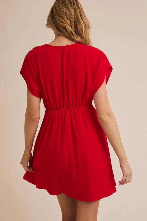 The Bailey Dress brings a flirty twist to your wardrobe with its charming v-neck and playful front tie detail. Perfect for sunny days or casual nights out, this dress combines comfort and style effortlessly. Slip into Bailey and let your fun side shine!