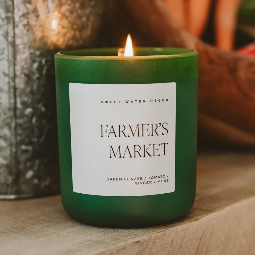 Bring the lively spirit of summer indoors with the Farmer's Market Candle. This limited edition scent blends fresh green leaves, juicy tomatoes, zesty citrus, and blooming garden flowers, creating a vibrant farmer’s market vibe. Playful hints of ginger and herbs add a grounding touch, making any room feel bright and inviting. Perfect for those who love a burst of nature-inspired freshness with a fun twist!