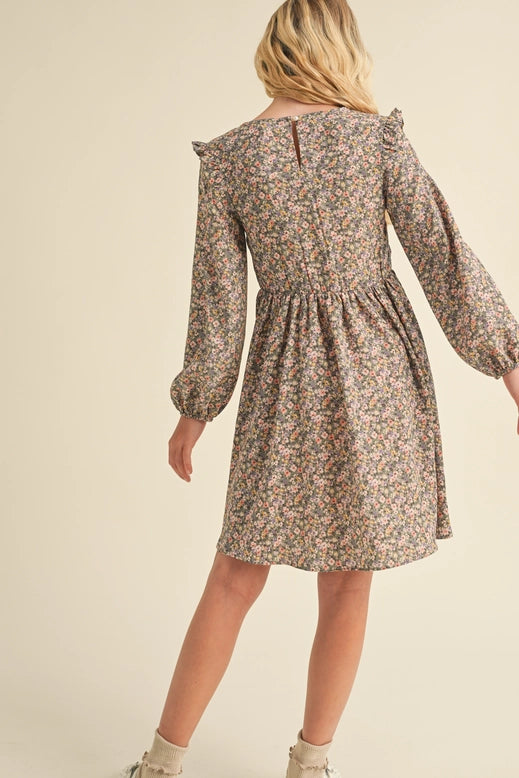 Get ready for some serious twirls in this playful mini dress! With a smocked front and ditsy floral print, your little girl will look oh-so-cute and be comfy all day long. Floral, fun, and fashionable this dress will keep her stylish and carefree.