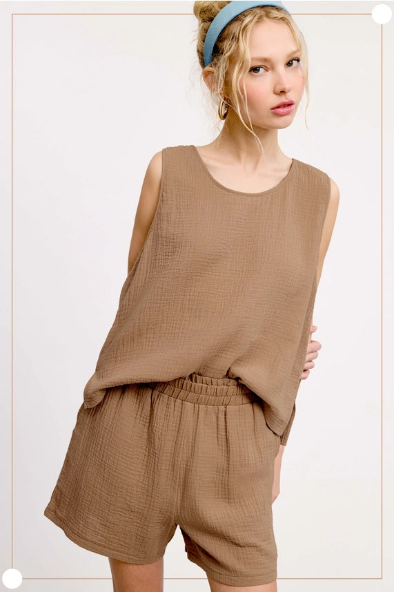 Stay cool and stylish this summer with the Jane Set. Crafted from lightweight gauze fabric, it offers a breezy feel that keeps you comfortable all day long. Perfect for sunny days and warm evenings, this playful set combines effortless fashion with breathable comfort. Embrace the season with a fresh, airy look that moves with you.