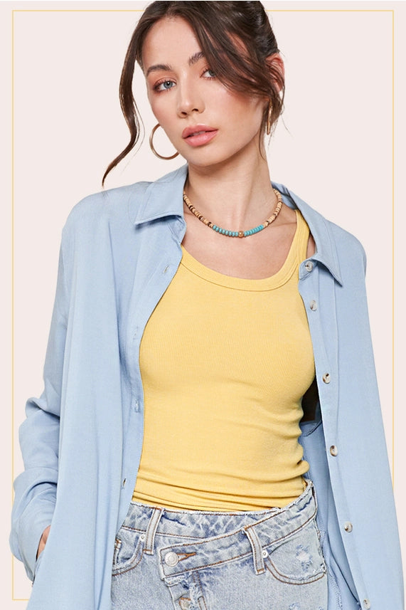 Stay cool and stylish all summer with the Julia Tank Top. This ribbed tank is a closet essential that pairs perfectly with everything from shorts to skirts. Its comfy fit and breathable fabric make it your go-to for sunny days and casual outings. Add a splash of fun to your summer wardrobe with this playful, easy-to-wear basic!