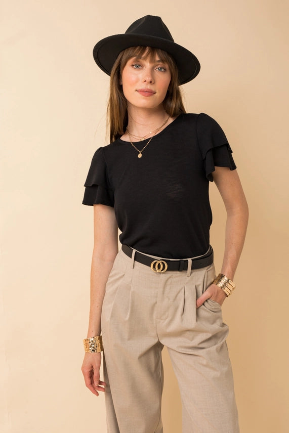 The Kendall Top brings a playful twist to your wardrobe with its charming double ruffle detail and breezy short sleeves. Perfect for dressing up with your favorite skirt or keeping it casual with jeans, this top adds a fun, flirty vibe to any outfit. Embrace effortless style that moves with you from day to night!