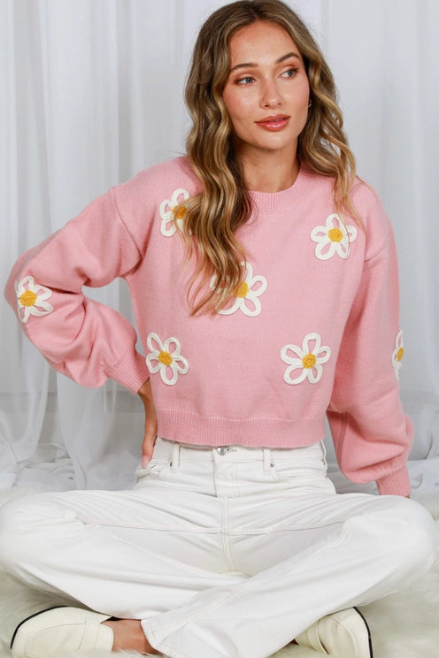 Thea is the ultimate spring sweater, with playful embroidered flowers in a fun pink hue. Stay comfy and cute in this quirky knit, perfect for those who don't take fashion too seriously!